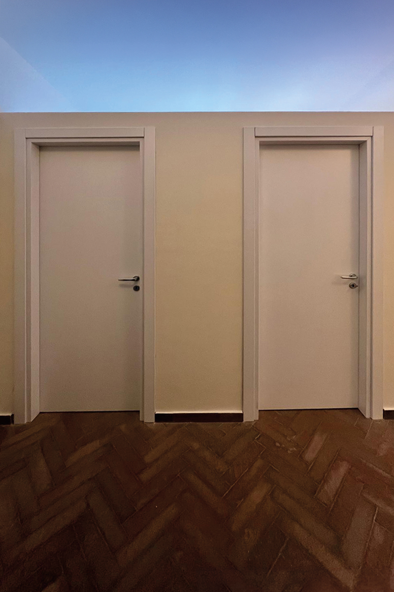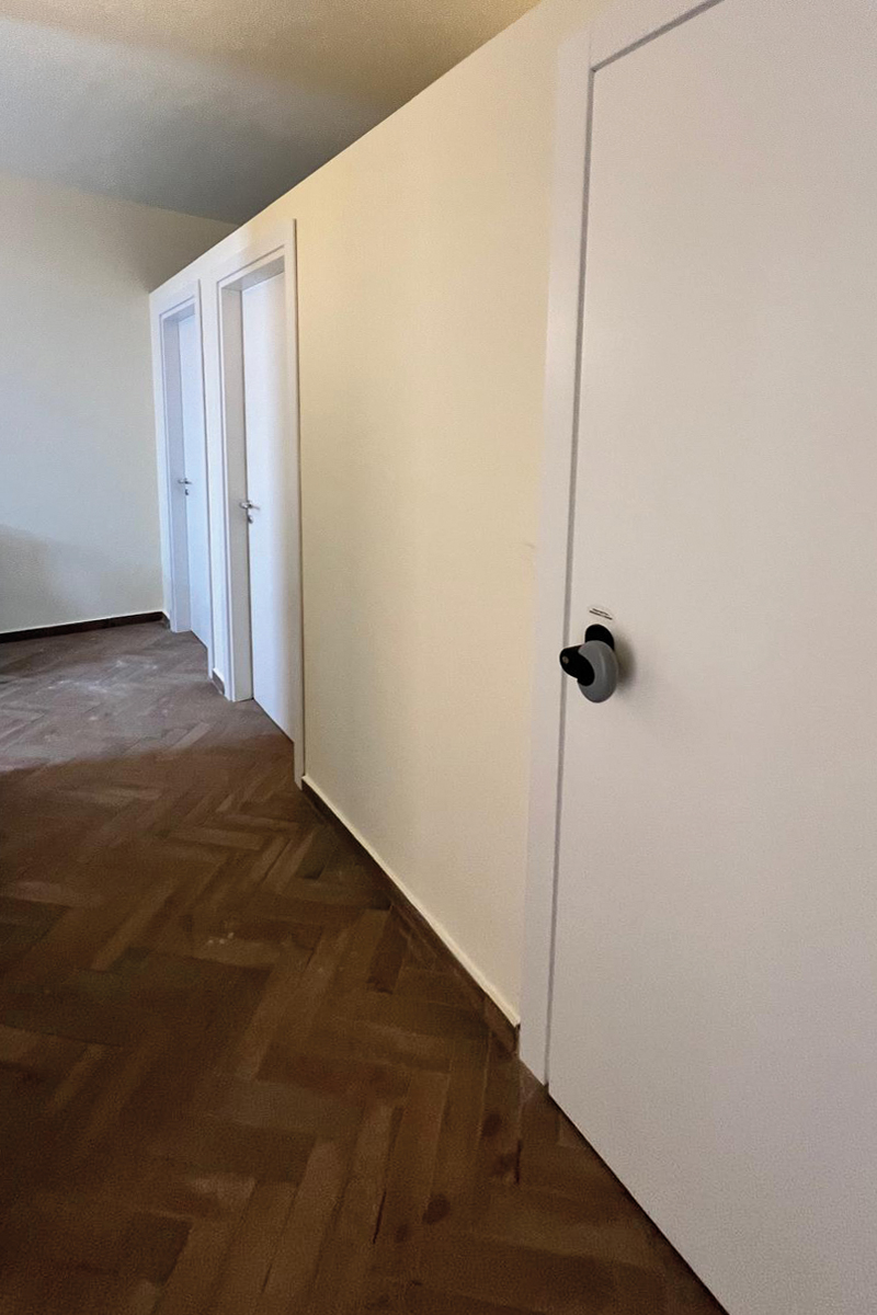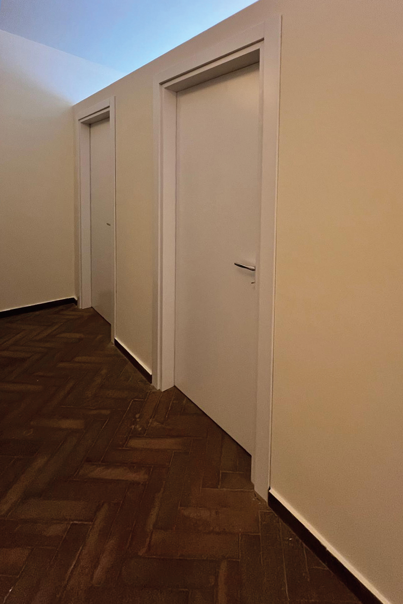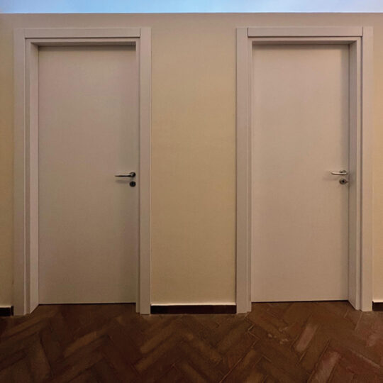 è un classico esempio di porta moderna “minimal”, ideale per chi cerca una soluzione funzionale che scompaia visivamente nell’arredamento senza appesantire lo spazio.
